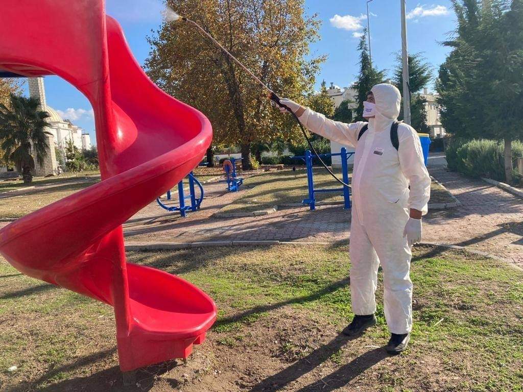 ✅Mehmet Ali Bacaklar parkında Covid-19 ile mücadele kapsamında çocuk oyuncakları dezenfekte edildi.