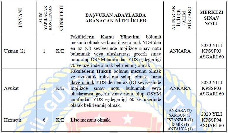 c. Alım yapılacak unvanların karşısındaki puan türlerinden, belirtilen asgari KPSS notunu almış olmak.
