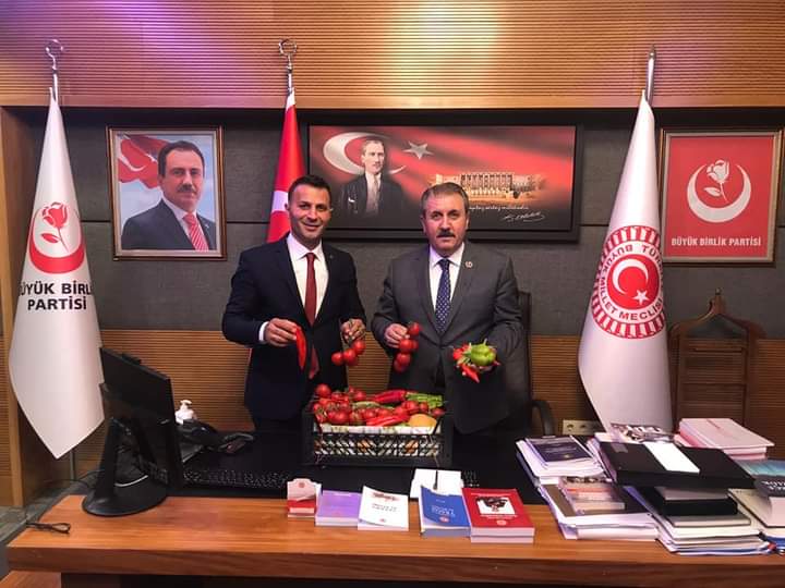 TBMM ye Kumlucada üretilen sebze çesitlerinden oluşan kasayla meclise girdi.Genel Başkan Desticiye Sağlıklı Gıdanın Başkenti Kumluca’da üretilen sebze paketi ve Tablo Hediye etti.