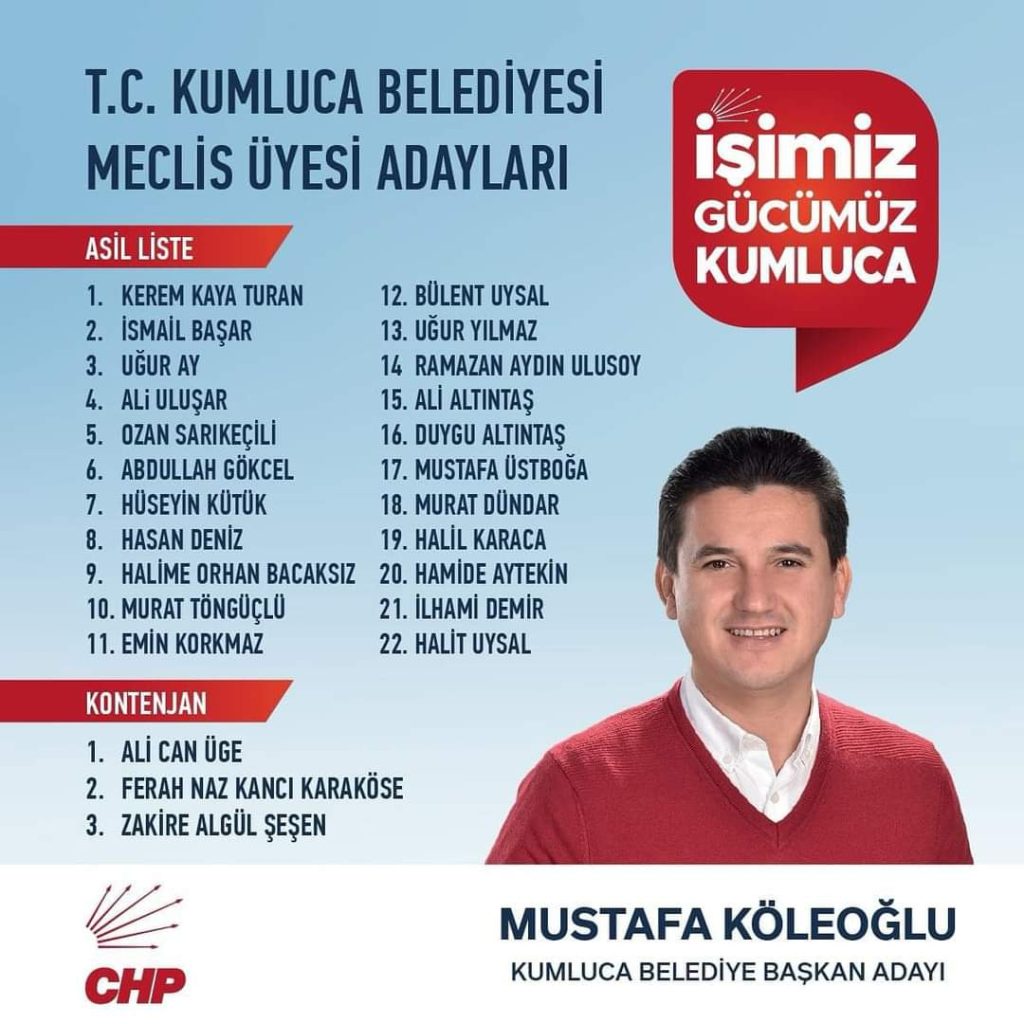CHP KUMLUCA BELEDİYE BAŞKAN ADAYI MUSTAFA KÖLEOĞLU’NUN BELEDİYE MECLİS ÜYESİ ADAYLARI…